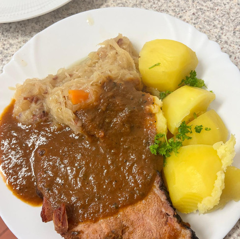 Dann ist es so weit, die Gäste kommen, Eisbein und Kassler werden aufgetan, wer wollte konnte ein frisch gezapftes Bier trinken.